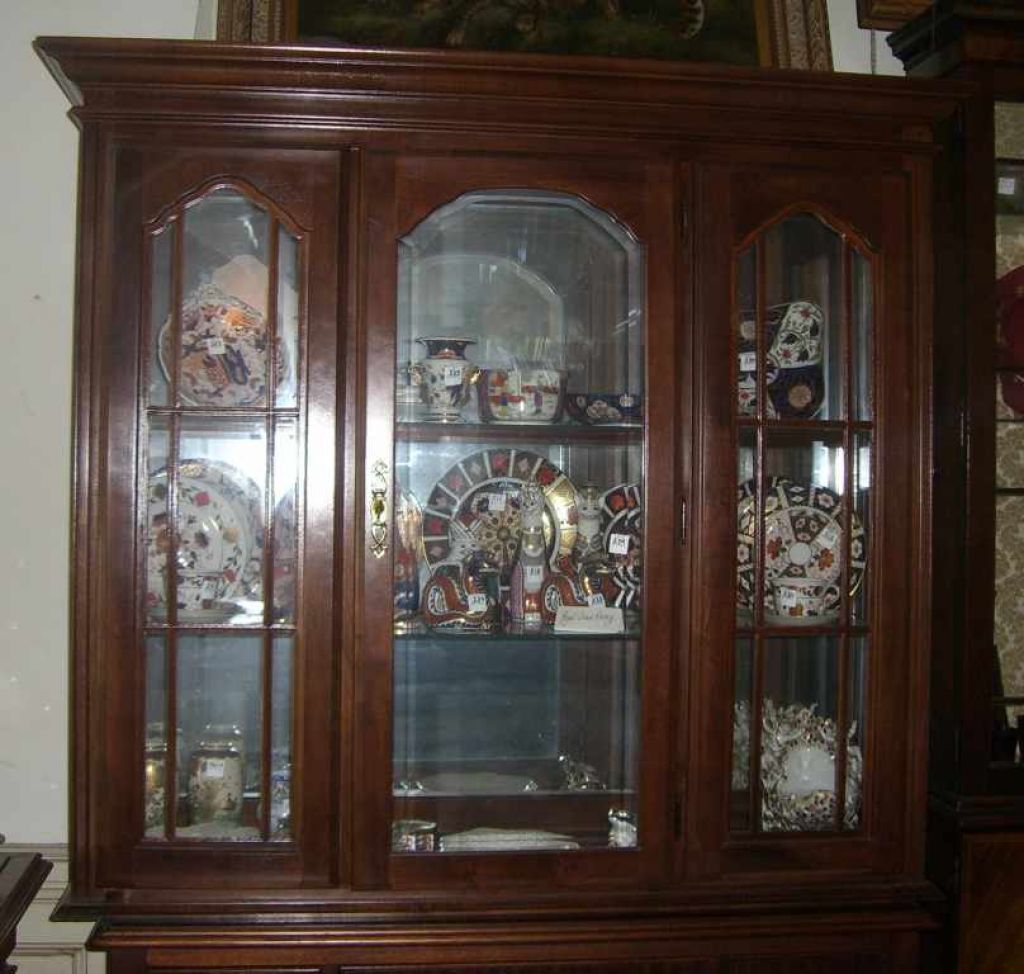 Mahogany display cabinet top with one door. It is mirrored & lighted - 52 1/4" wide by 46 1/2" tall by 16 1/2" deep Mahogany display cabinet top with one door. It is mirrored & lighted - 52 1/4" wide by 46 1/2" tall by 16 1/2" deep