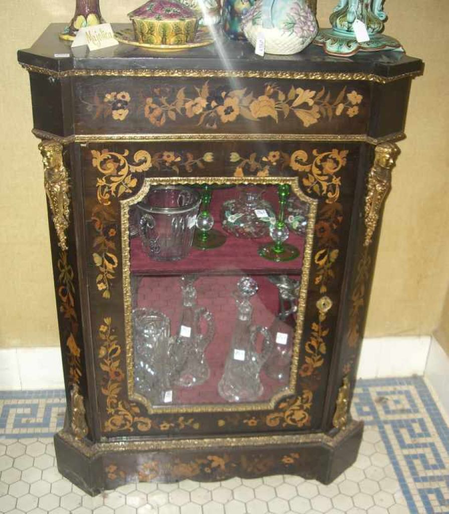 2439 Marquetry Inlaid one Glass Door Cabinet with Ormolu