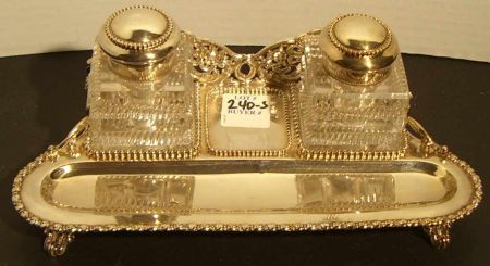 Silver plated ink stand w/2 bottles Silver plated ink stand w/2 bottles