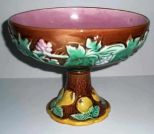 Majolica compote with fruit & leaves - 9" round by 7" tall Majolica compote with fruit & leaves - 9" round by 7" tall