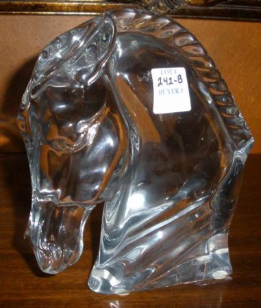 Baccarat Large Clear Crystal Horse Head. 2 1/2" width x 5 1/2" length x 6 1/2" height Baccarat Large Clear Crystal Horse Head. 2 1/2" width x 5 1/2" length x 6 1/2" height