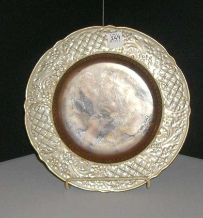 Hand painted Germany portrait plate - 2 boys & dog with fruit - 11" round Hand painted Germany portrait plate - 2 boys & dog with fruit - 11" round