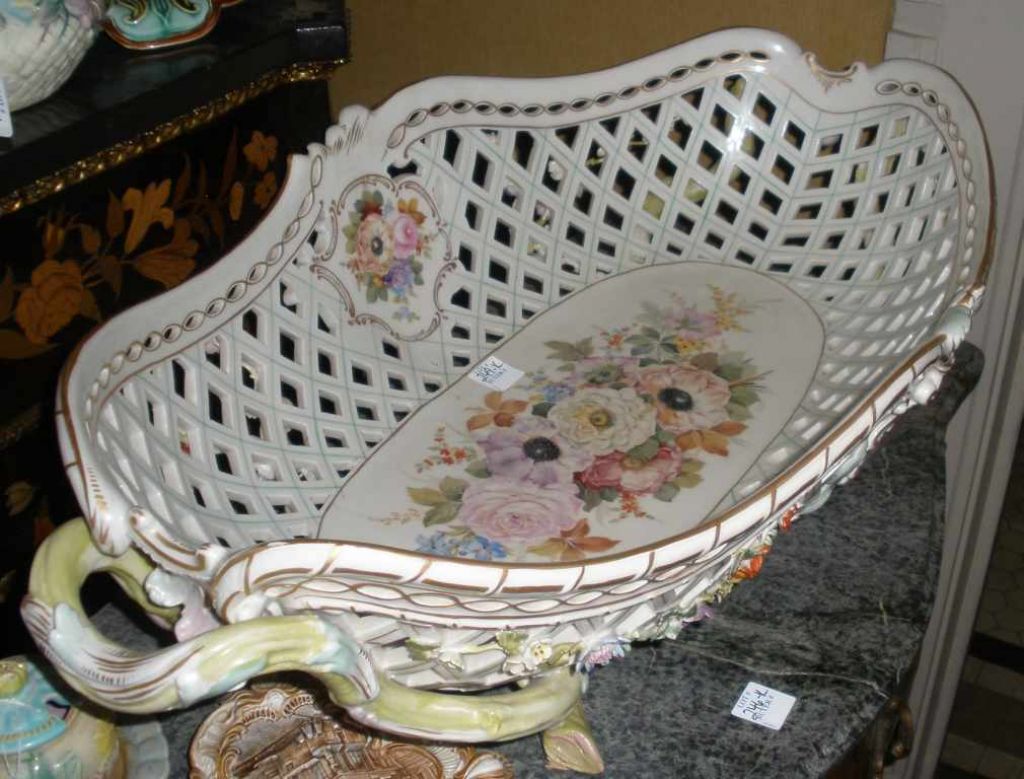 Large KPM center bowl with floral design - 28" long by 16" deep by 9" tall Large KPM center bowl with floral design - 28" long by 16" deep by 9" tall