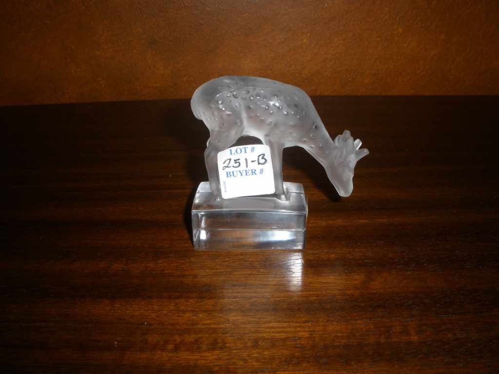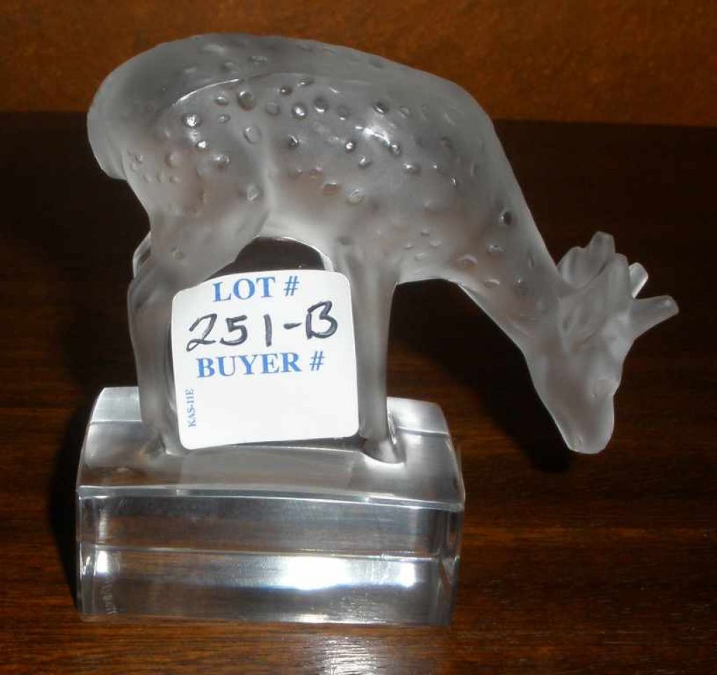 2493 Lalique/France Frosted Deer on Clear Glass Pedestal