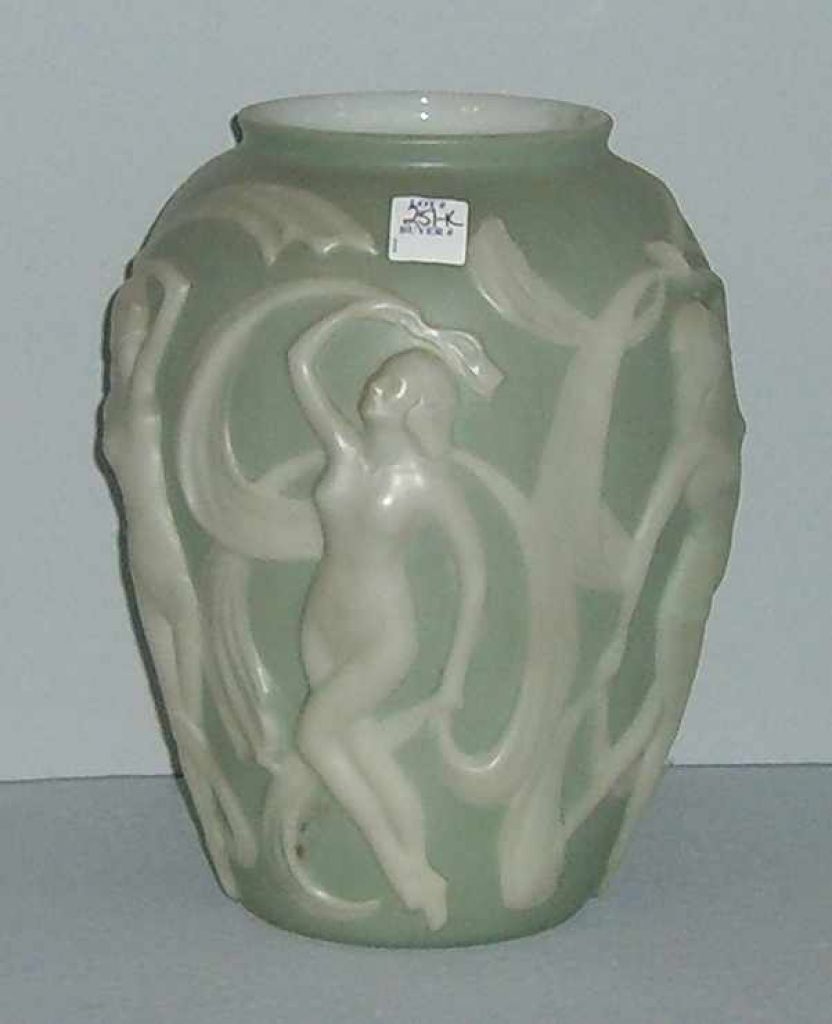 Phoenix dancing ladies green & white vase - 8" width by 12" height Phoenix dancing ladies green & white vase - 8" width by 12" height