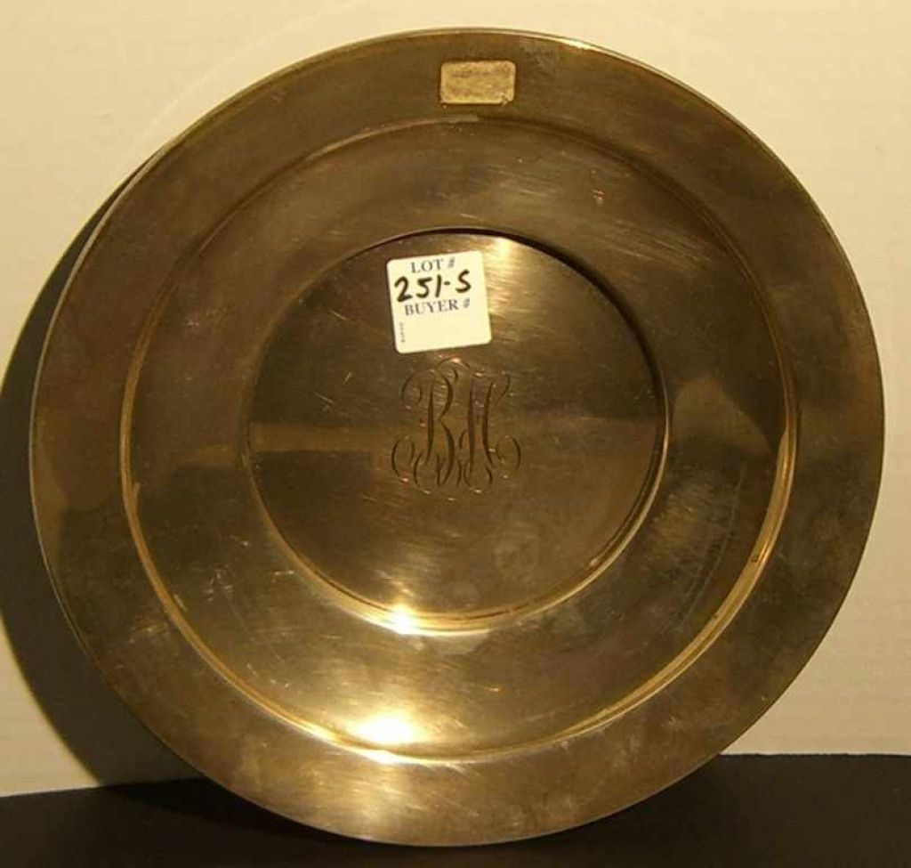Sterling silver tray, monogram 1932 engraved on back - 9" Sterling silver tray, monogram 1932 engraved on back - 9"