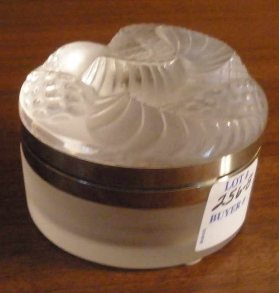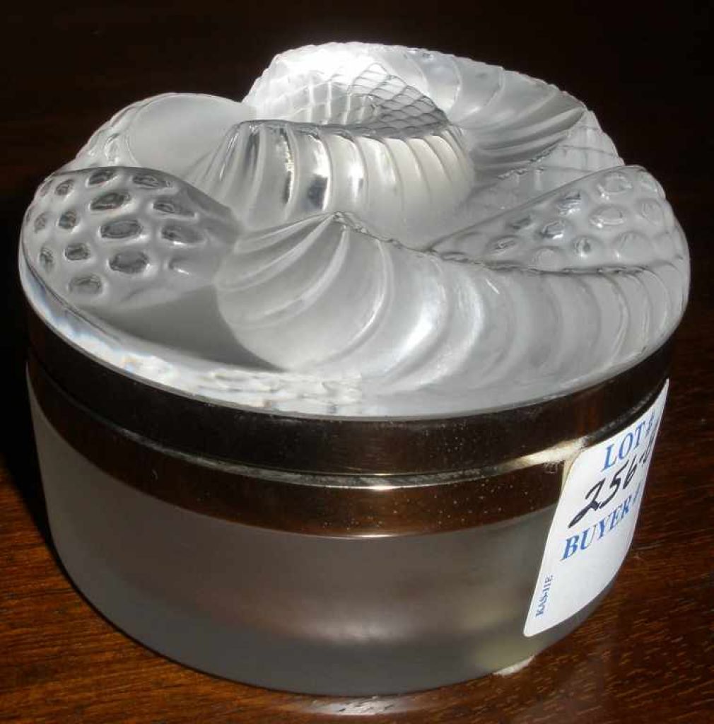 2518 Lalique/France Covered Box w/Frosted Molded Serpent Top