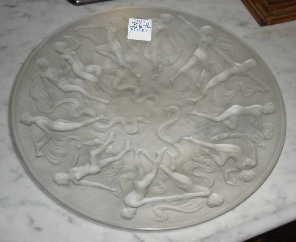 Consolidated Glass dancing nudes plate white wash - 10" round Consolidated Glass dancing nudes plate white wash - 10" round