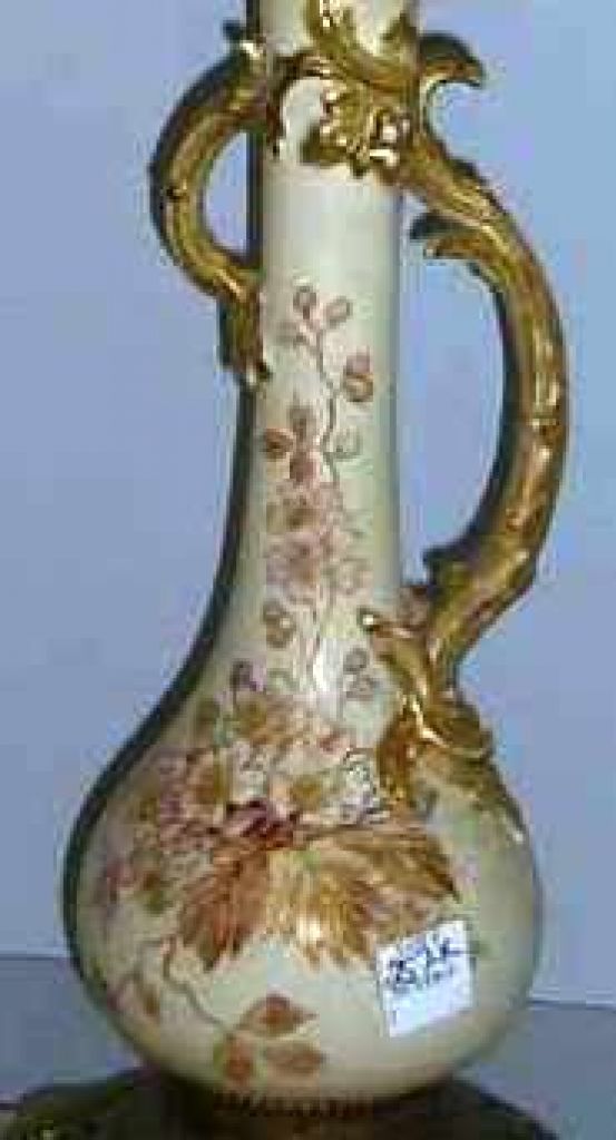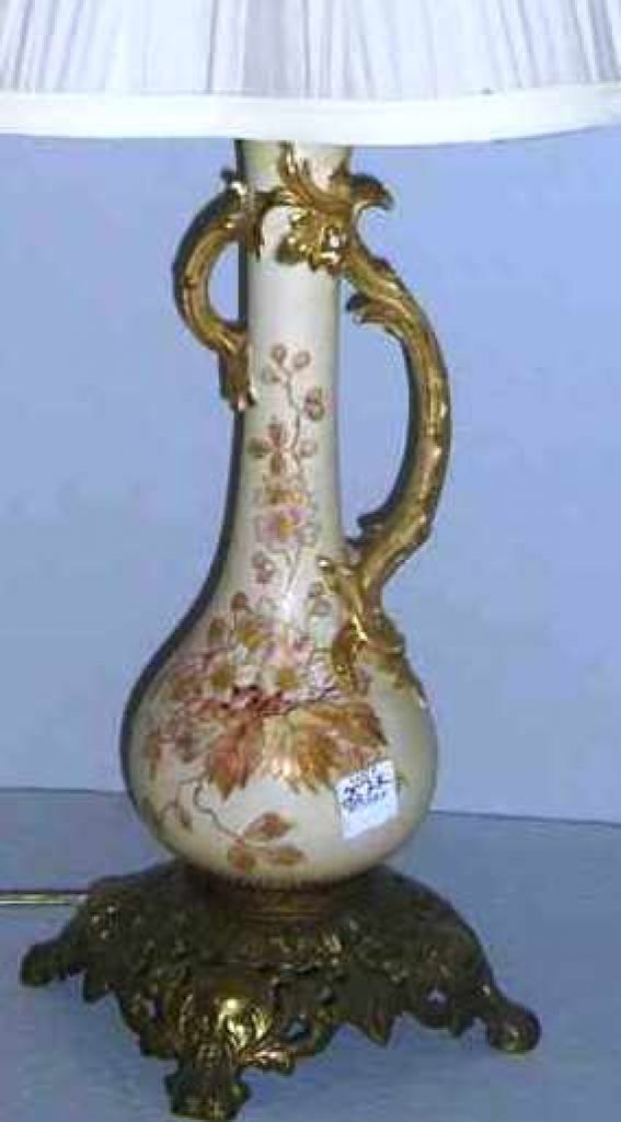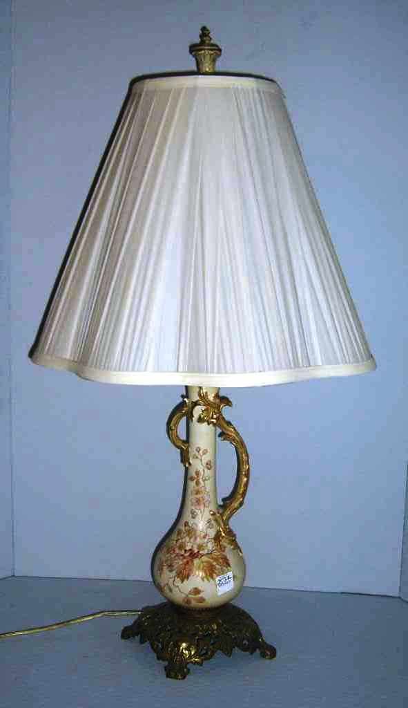 2524 Hand painted Austria lamp with enameled flowers double handle