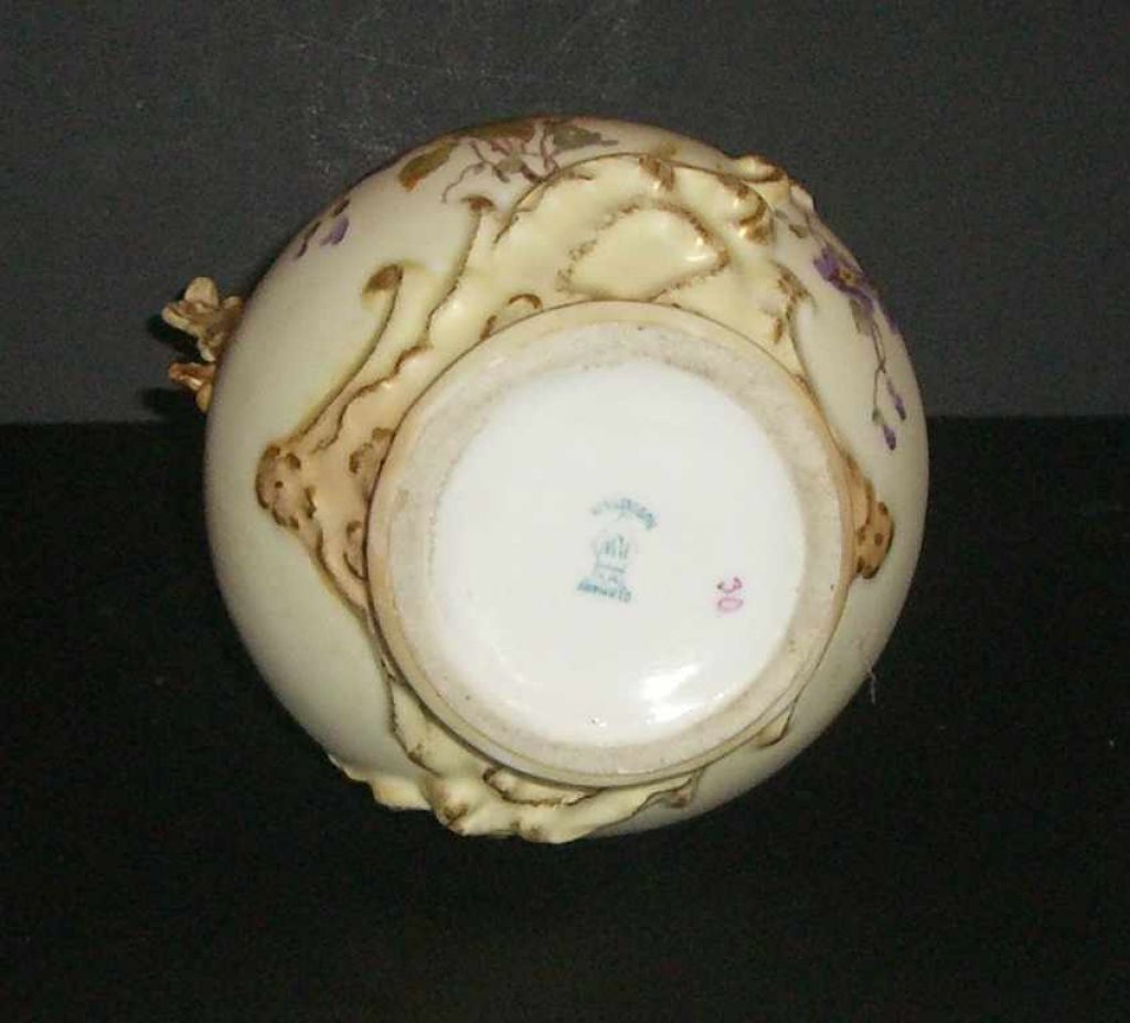 Hand painted German Rudolstadt double handle vase - 6 1/2" round by 12 1/2" tall Hand painted German Rudolstadt double handle vase - 6 1/2" round by 12 1/2" tall