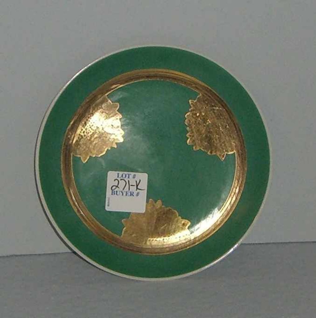 Small green Bavaria plate with gold flowers - 6" round Small green Bavaria plate with gold flowers - 6" round