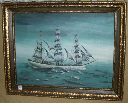Framed acrylic on board of "Sailing Ship" by Jo Jackson 1970 - 28" wide by 22" tall Framed acrylic on board of "Sailing Ship" by Jo Jackson 1970 - 28" wide by 22" tall