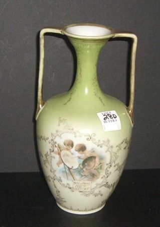 Rosenthal portrait double handle vase, cupids painting - 4 1/2" round by 9" tall Rosenthal portrait double handle vase, cupids painting - 4 1/2" round by 9" tall