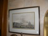 Framed Hand Colored Steel Engraving Courtyard Scene - 20 1/2" tall x 27" wide Framed Hand Colored Steel Engraving Courtyard Scene - 20 1/2" tall x 27" wide