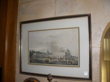 2648 Framed Hand Colored Steel Engraving Courtyard Scene