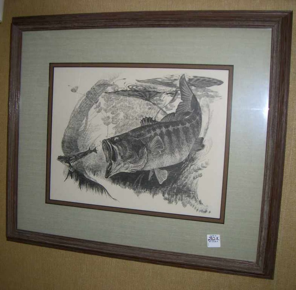 Framed Glen Gore picture of largemouth bass - 24" width x 20" length Framed Glen Gore picture of largemouth bass - 24" width x 20" length