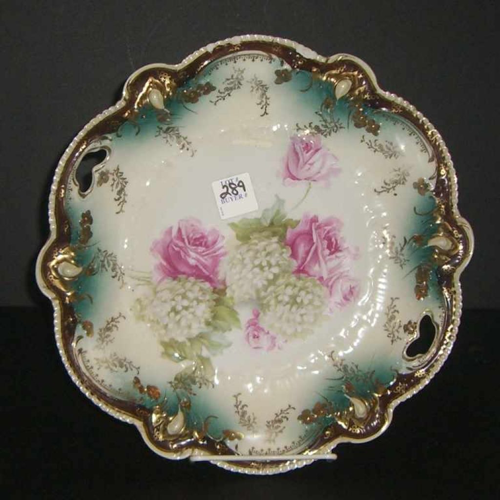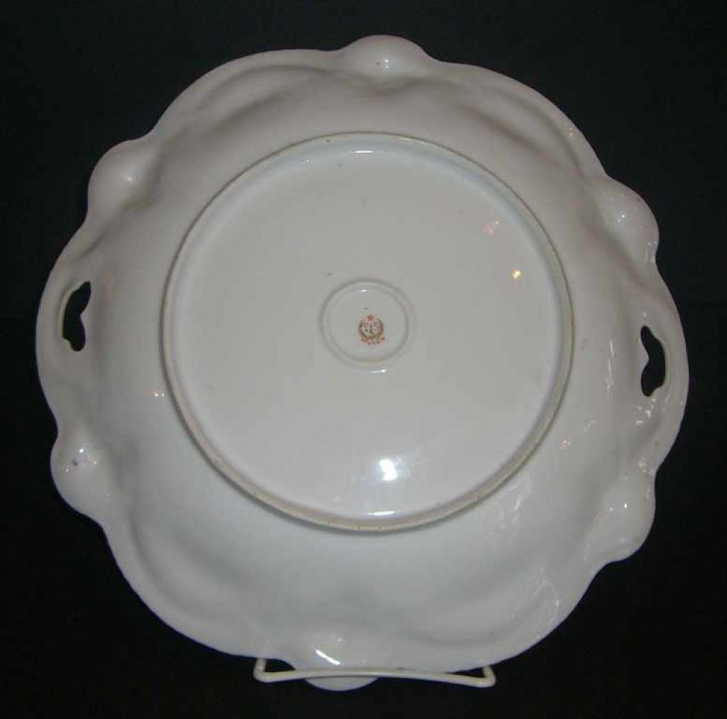 RS Prussia hand painted plate double handle, beaded trim - 11 inch round RS Prussia hand painted plate double handle, beaded trim - 11 inch round
