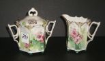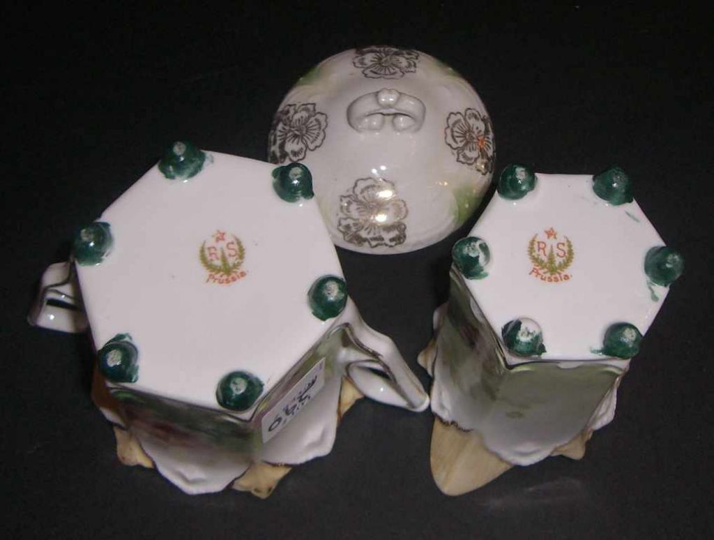 RS Prussia creamer & sugar, green with flowers RS Prussia creamer & sugar, green with flowers