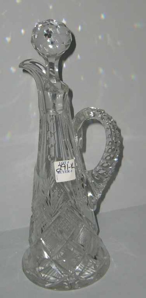Cut glass decanter with handle & stopper, Harvard pattern - 14" tall Cut glass decanter with handle & stopper, Harvard pattern - 14" tall