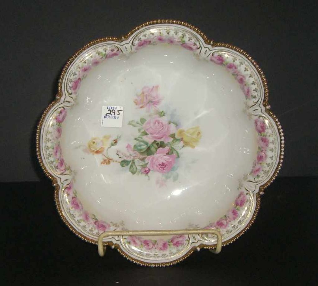 RS Prussia hand painted bowl, gold trim - 11" round by 3 1/2" tall RS Prussia hand painted bowl, gold trim - 11" round by 3 1/2" tall