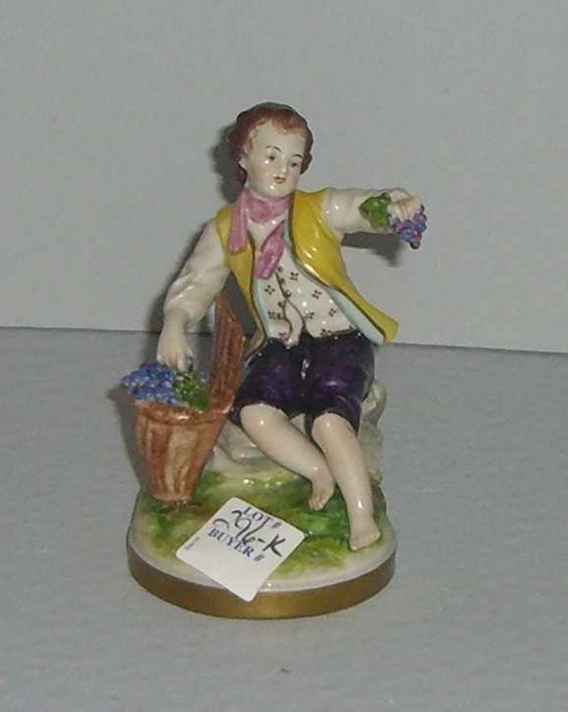 Sitzendorf small porcelain boy figure with grapes - 5 1/2" tall Sitzendorf small porcelain boy figure with grapes - 5 1/2" tall