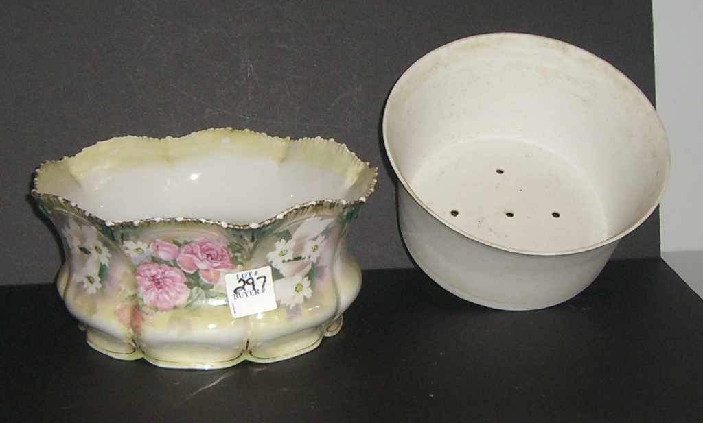 RS Prussia fernery with liner, scalloped top - 8" round by 3 1/2" tall RS Prussia fernery with liner, scalloped top - 8" round by 3 1/2" tall