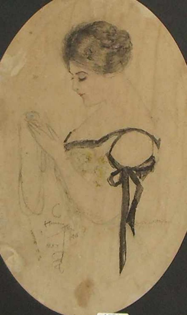 2727 Hand Drawn Picture of Lady By Harrison Fisher Dated 1908
