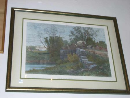 "The Old Mill Stream" picture of wagon crossing bridge - 26" width x 30" length "The Old Mill Stream" picture of wagon crossing bridge - 26" width x 30" length