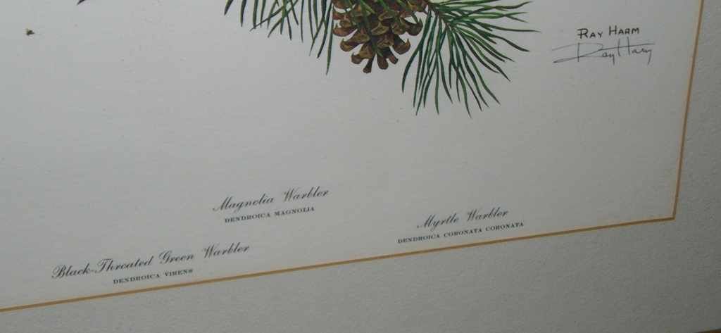 Picture of Warbler birds by Ray Harm. Magnolia, Black Throated Green, & Myrtle. 22" width x 26" length Picture of Warbler birds by Ray Harm. Magnolia, Black Throated Green, & Myrtle. 22" width x 26" length