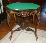 Walnut & burl walnut scalloped folding top game table with gate legs - 31" tall by 37 1/2" wide by 31 1/"2 deep (opened) & 15 5/8" deep (closed) Walnut & burl walnut scalloped folding top game table with gate legs - 31" tall by 37 1/2" wide by 31 1/"2 deep (opened) & 15 5/8" deep (closed)