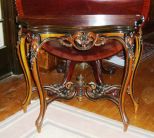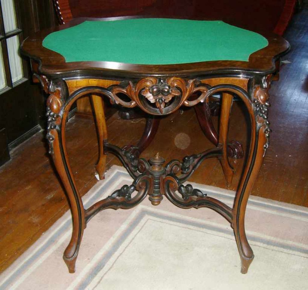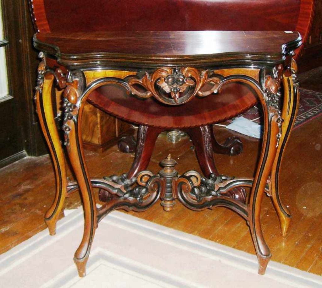 2764 Walnut & burl walnut scalloped folding top game table with gate legs