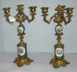 2791 Pair of Gilded Medal 3 Light Candelabras