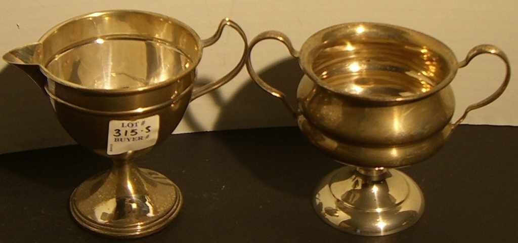 Set of footed sterling silver cream and sugar Set of footed sterling silver cream and sugar
