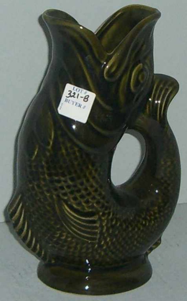 Invento/England Olive Green Fish Pitcher/Vase - 9 1/2" tall Invento/England Olive Green Fish Pitcher/Vase - 9 1/2" tall