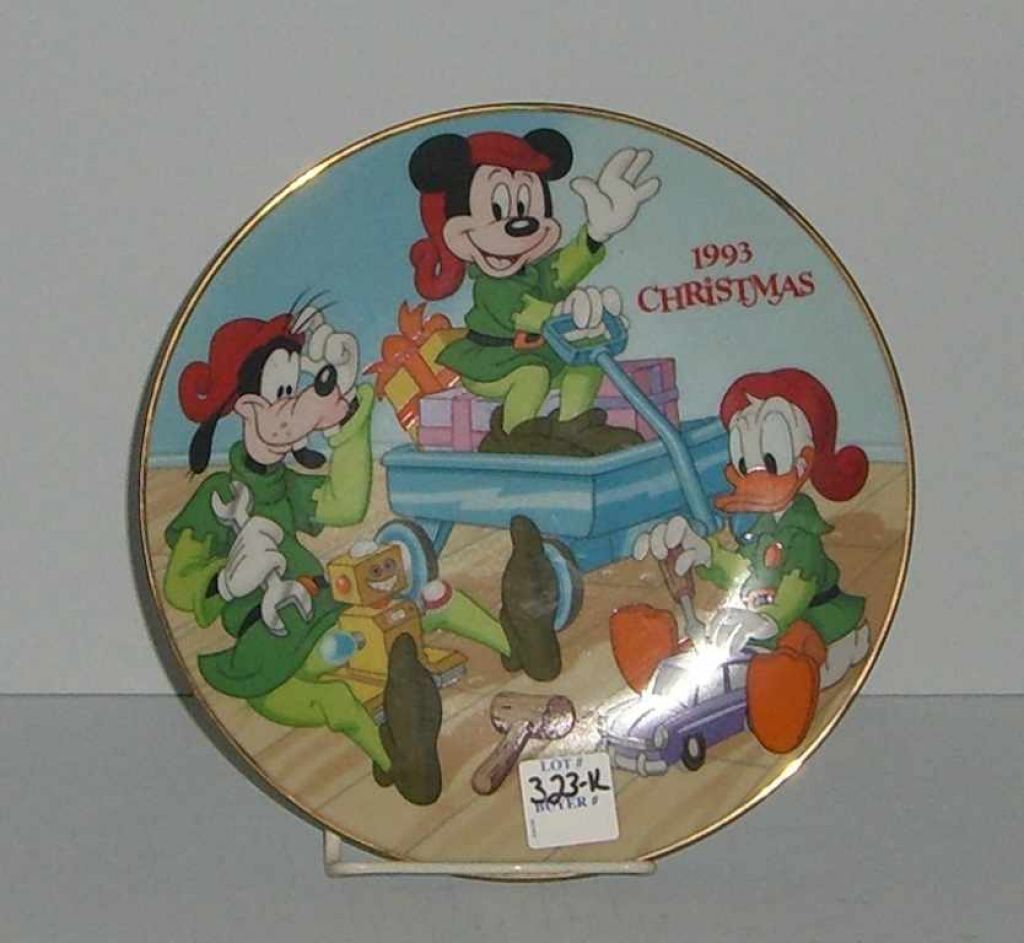 1993 Christmas plate by Grolier for Walt Disney" Santa's Workshop". Mickey Mouse, Goofy, & Donald Duck - 8 1/2" round 1993 Christmas plate by Grolier for Walt Disney" Santa's Workshop". Mickey Mouse, Goofy, & Donald Duck - 8 1/2" round