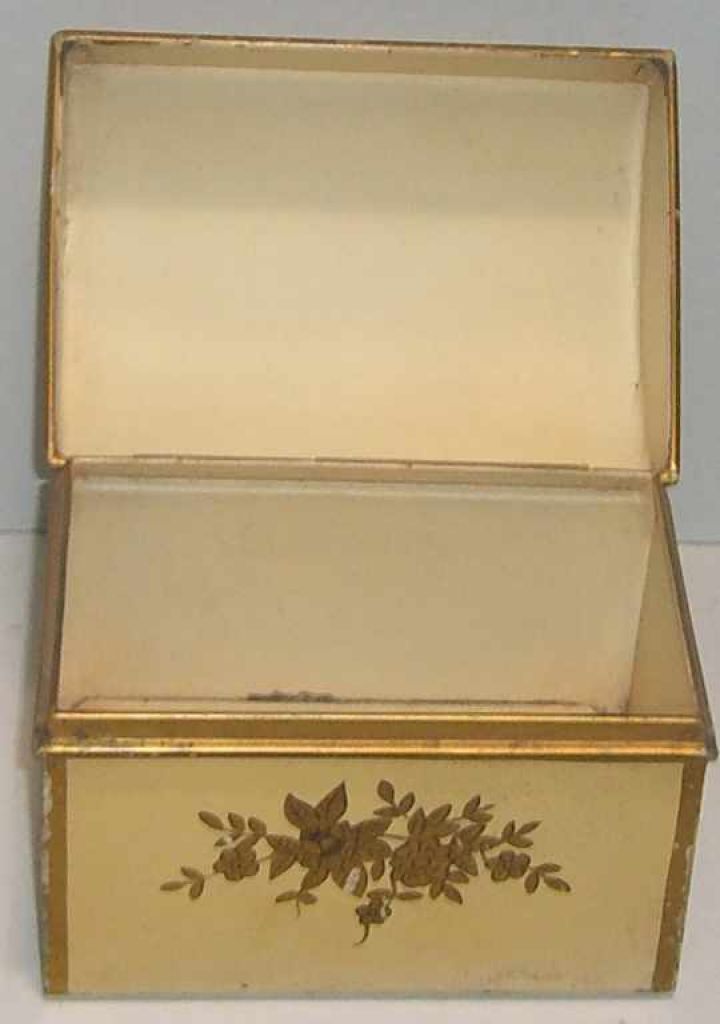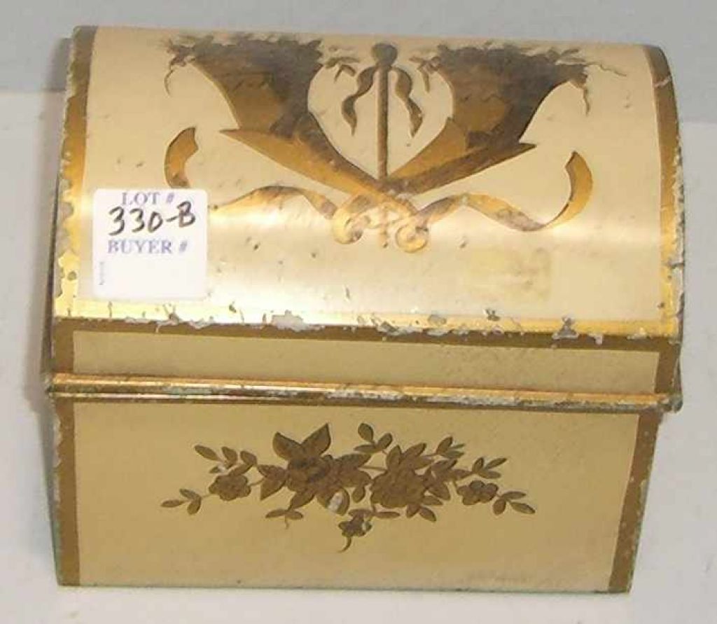 French Dome Top Box w/Cream Background w/Gold Decoration. 3 3/4" width x 5 1/2" length x 4 2/3" height French Dome Top Box w/Cream Background w/Gold Decoration. 3 3/4" width x 5 1/2" length x 4 2/3" height