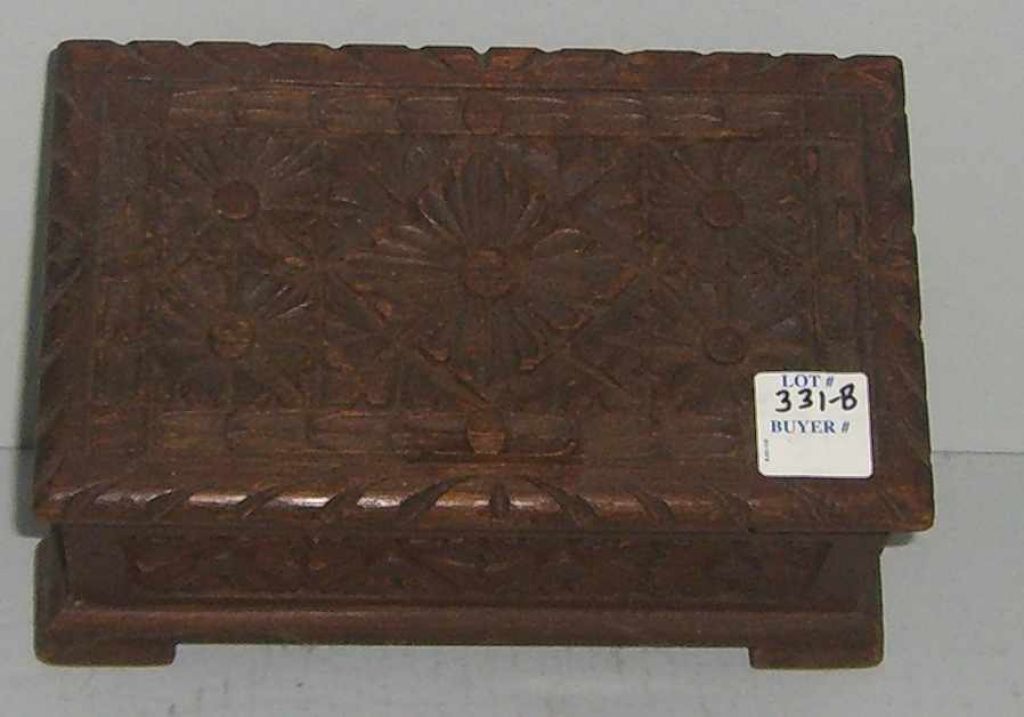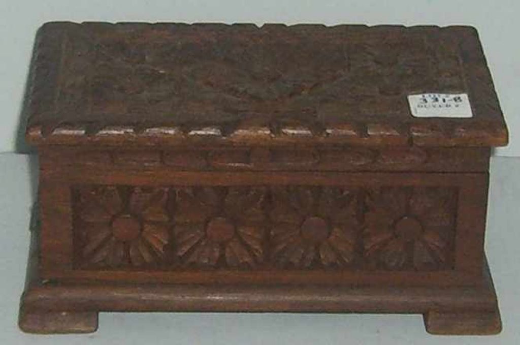 Tramp Art Hand Carved Box Styled Floral Within Square. 4 2/3" width x 8 1/4" length x 3 3/4" height Tramp Art Hand Carved Box Styled Floral Within Square. 4 2/3" width x 8 1/4" length x 3 3/4" height