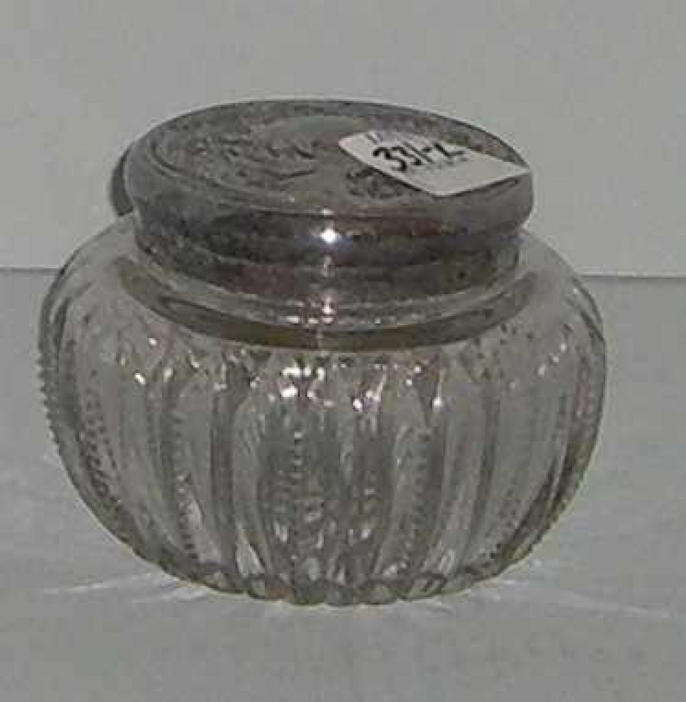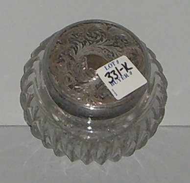 Small clear round powder jar with sterling lid - 4" round by 3" tall Small clear round powder jar with sterling lid - 4" round by 3" tall