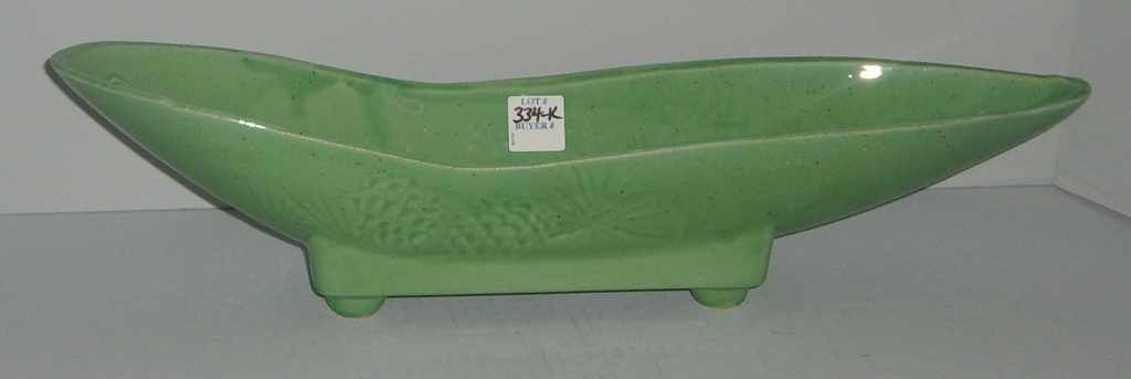 2895 Green Pottery Long Center Bowl with Pine Cone Design