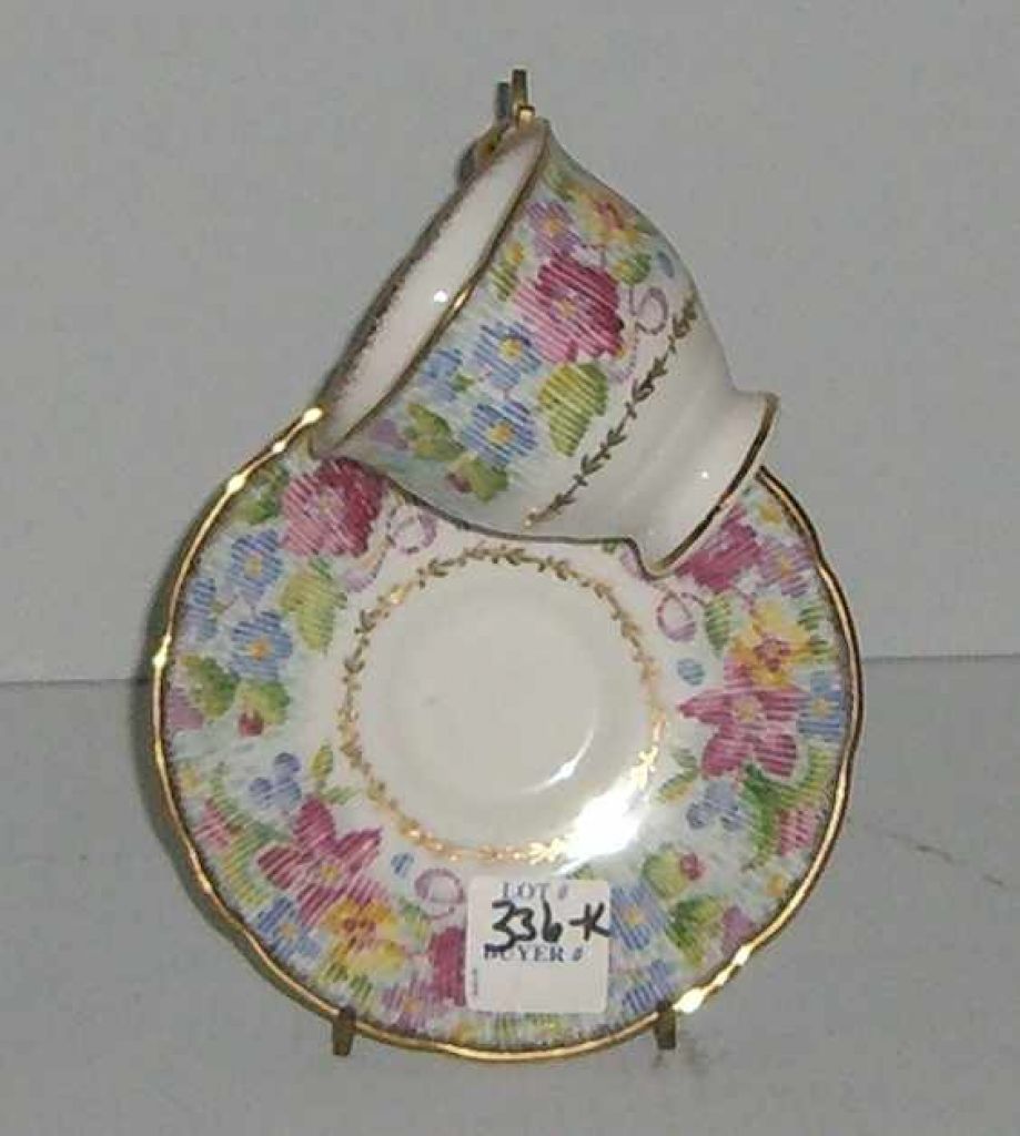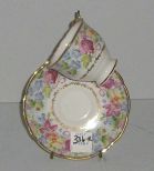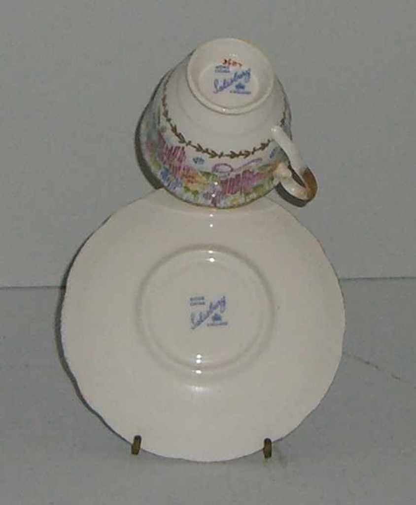 Salisbury bone china England cup & saucer. Multi flowers & gold trim. Cup 2 1/2" tall x 2" round, saucer 5" round Salisbury bone china England cup & saucer. Multi flowers & gold trim. Cup 2 1/2" tall x 2" round, saucer 5" round