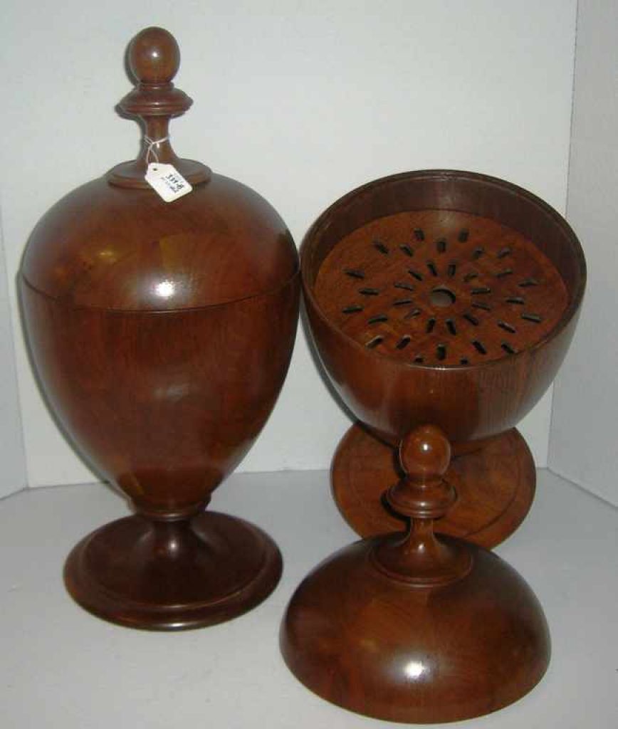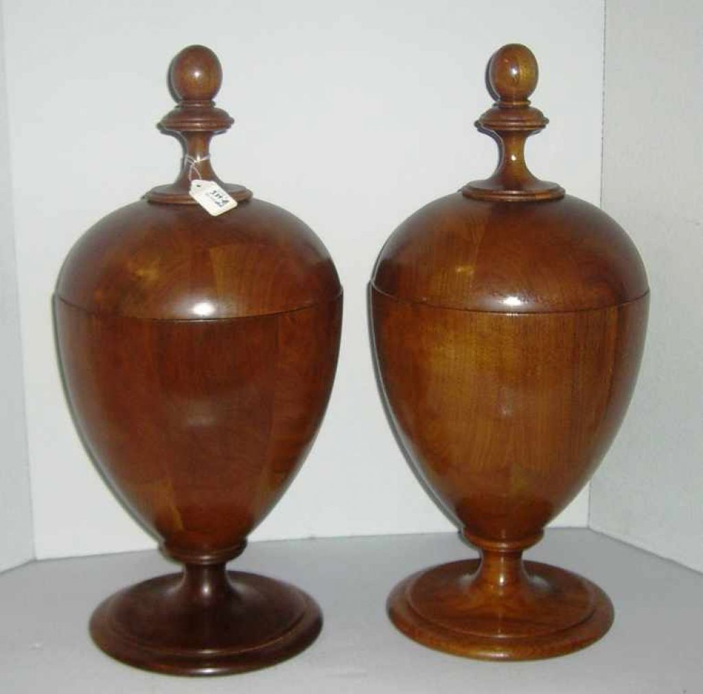 Pair of Large Walnut Footed Urn Shaped Knife Boxes w/Covers - 22" tall x 10 1/4" diameter Pair of Large Walnut Footed Urn Shaped Knife Boxes w/Covers - 22" tall x 10 1/4" diameter