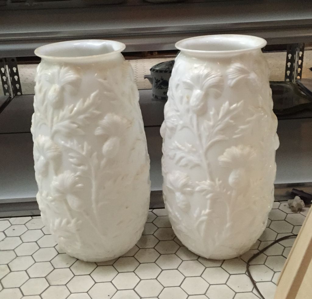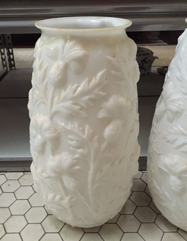 Pair Consolidated/Phoenix Glass Company Floral Vases/Umbrella Stands - Thistle Pattern - 18" tall Pair Consolidated/Phoenix Glass Company Floral Vases/Umbrella Stands - Thistle Pattern - 18" tall
