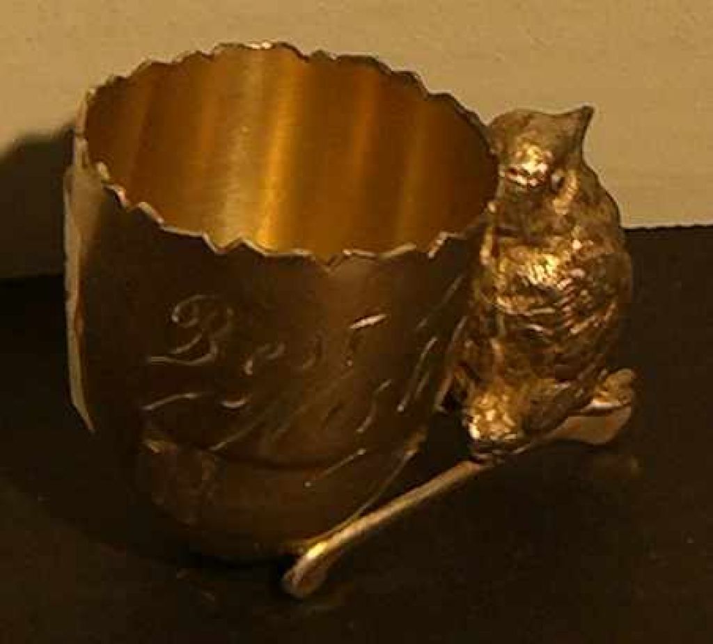 Victorian silverplate toothpick holder, support by bird and wishbone Victorian silverplate toothpick holder, support by bird and wishbone