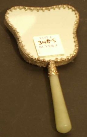 2966 Small hand mirror with emboss silverplate backing and jade handle