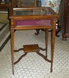 2967 Small Lift top Display Stand with Cross Stretcher Base Mahogany with Inlay