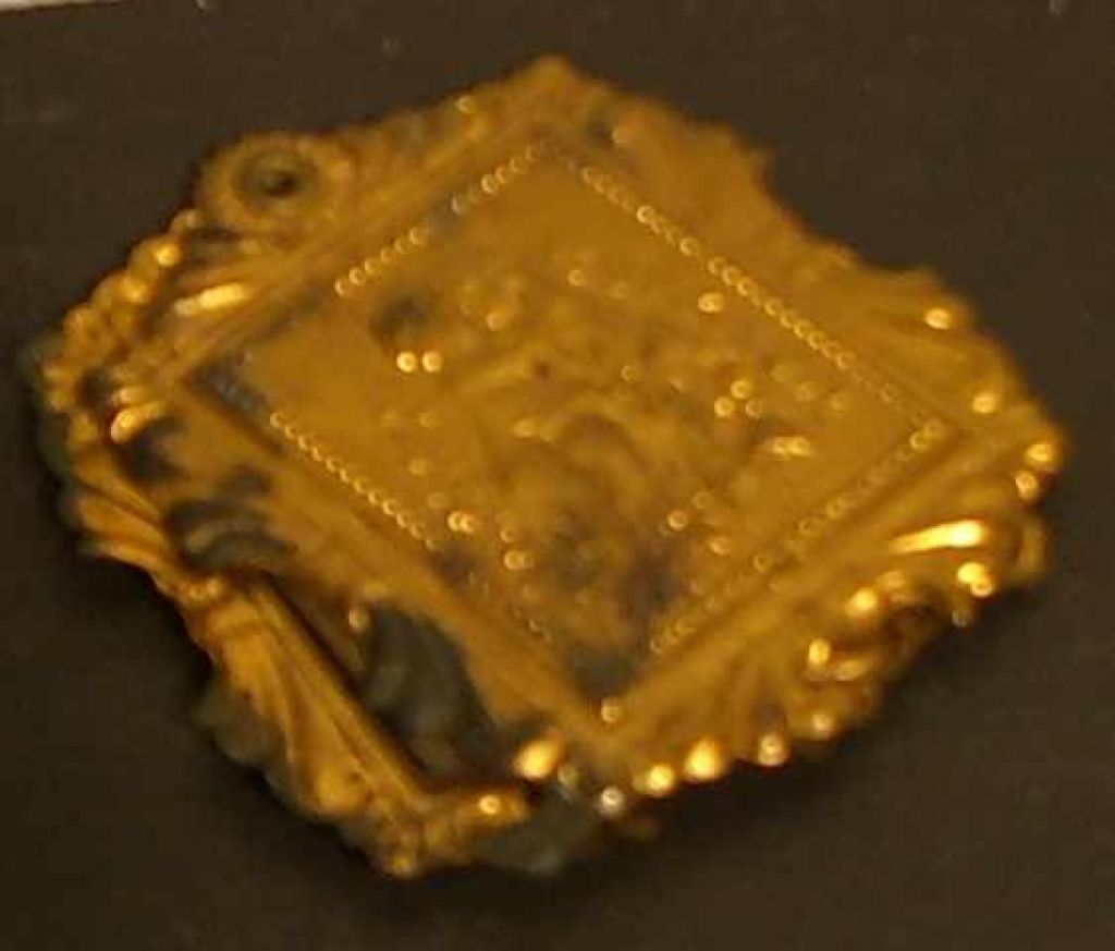 Gold wash metal picture holder with cherub motif Gold wash metal picture holder with cherub motif