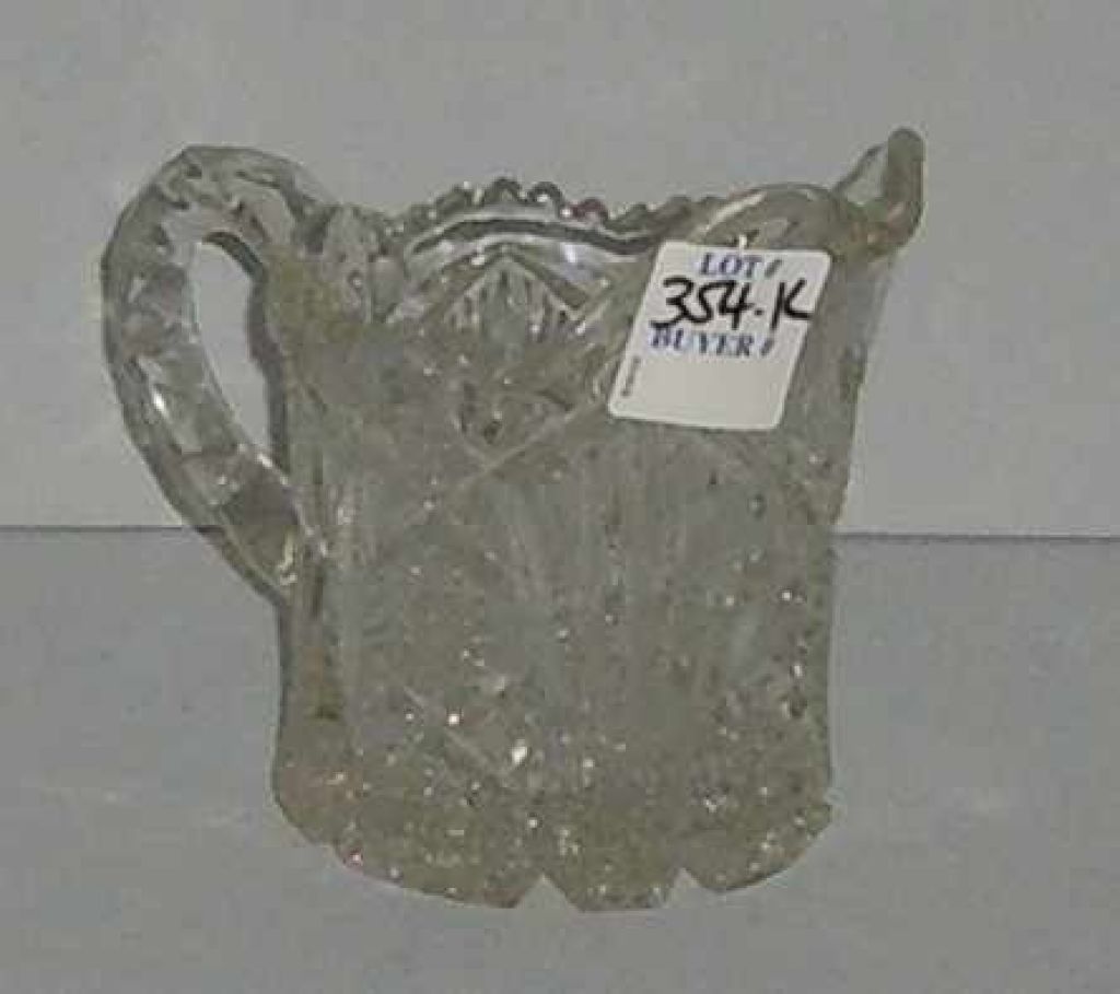 Clear pressed glass creamer. 4" tall Clear pressed glass creamer. 4" tall