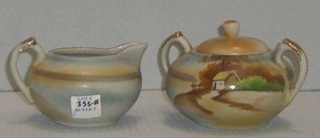 Nippon Hand Painted Cottage Scene - Creamer, Covered Sugar Nippon Hand Painted Cottage Scene - Creamer, Covered Sugar