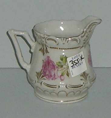 White creamer with gold trim & red roses. 4" tall White creamer with gold trim & red roses. 4" tall