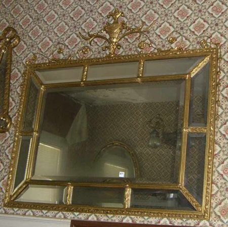 3043 Adams Style Gilt Framed Beveled Mirror with Classic Urn